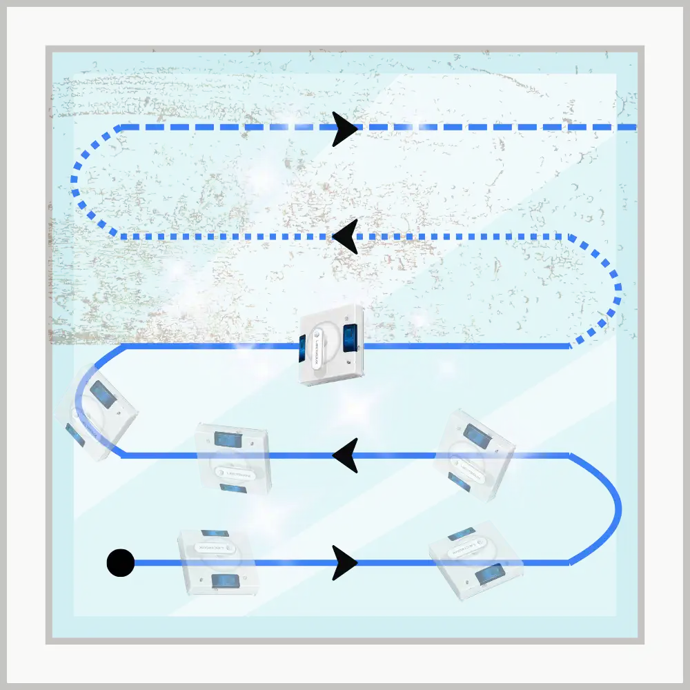 Le robot lave-vitre pulvérise, frotte et essuie la surface. Une fois terminé, il revient automatiquement à son point de départ.