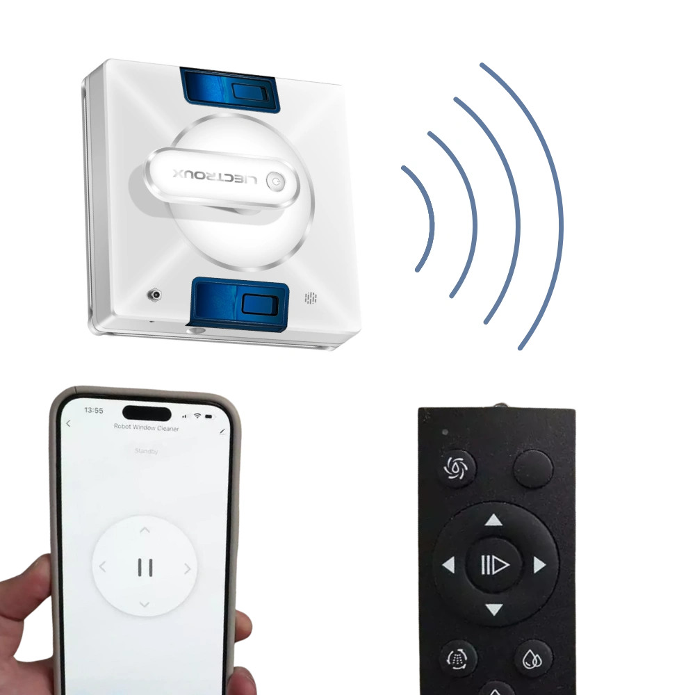 Le robot lave-vitre Liectroux YW509 se pilote simplement grâce à sa télécommande 2,4 GHz (démarrage, pause, choix du mode ou direction manuelle). Il est également compatible avec une application mobile intuitive, idéale pour lancer un cycle ou ajuster les réglages à distance. Un contrôle pratique et accessible, où que vous soyez.